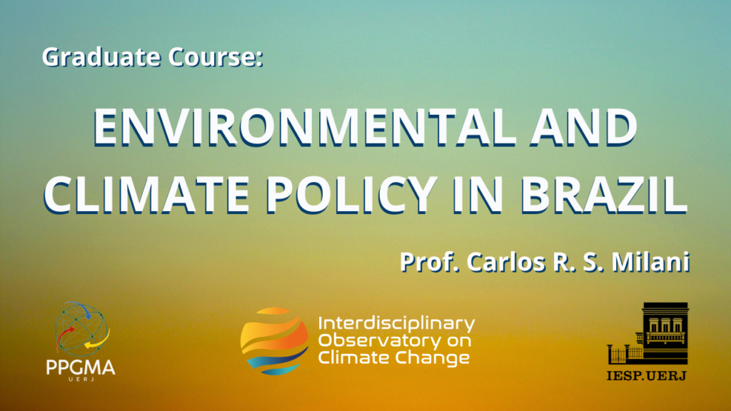 During the first semester of 2026, Prof. Carlos R. S. Milani teaches the course Environmental and Climate Policy in Brazil, a subject common to both the IESP-UERJ Political Science graduate program and the UERJ Environment graduate program.