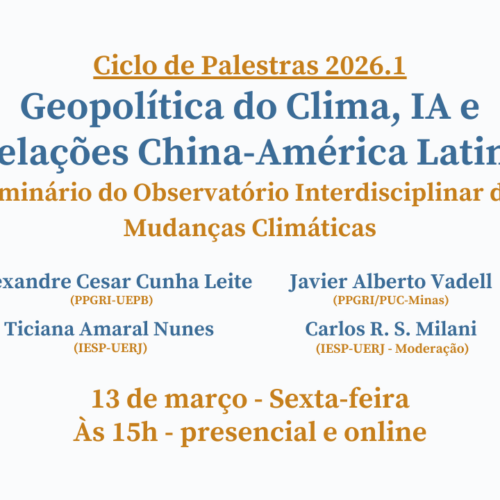 Em fevereiro de 2026, o Prof. Carlos R. S. Milani foi convidado a passar um estágio como Pesquisador Visitante do Centro de Estudos Sociais da Universidade de Coimbra (CES-UC), em Portugal através de apoio da Fundação para a Ciência e a Tecnologia (FCT).