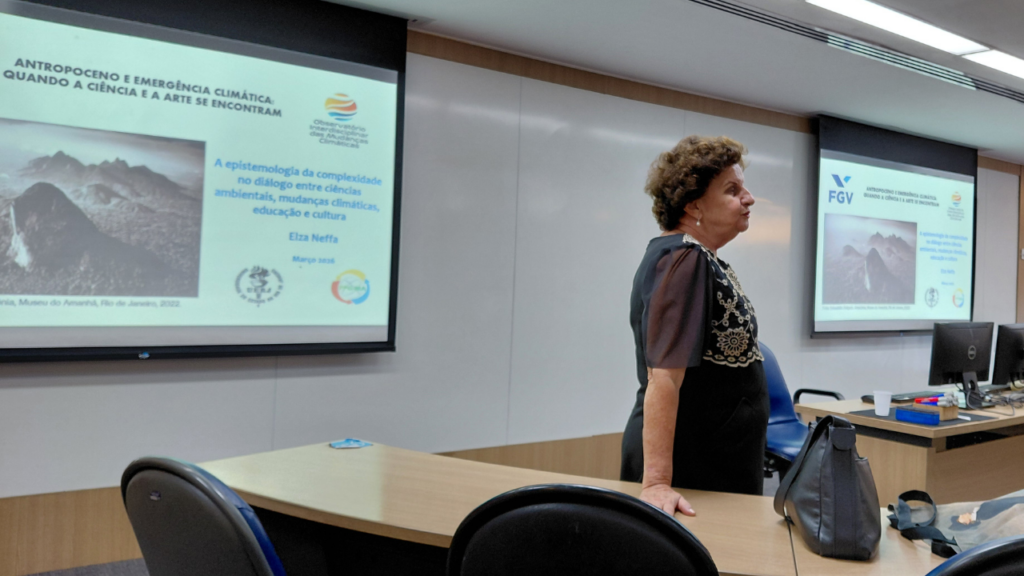 Durante março de 2026, a Fundação Getúlio Vargas (FGV Arte) ofereceu o minicurso Antropoceno e Emergência Climática: quando a arte e a ciência se encontram, um projeto do Observatório Interdisciplinar das Mudanças Climáticas. Entre os dias 16/ e 26/3, na sede da FGV no Rio de Janeiro (Praia de Botafogo, 190), o programa do curso apresentou um conteúdo integrando áreas e temáticas como arte, relações internacionais, oceanografia, sociologia, direito, economia e ciência política, ministrado por pesquisadoras e pesquisadores do Observatório e docentes convidados.